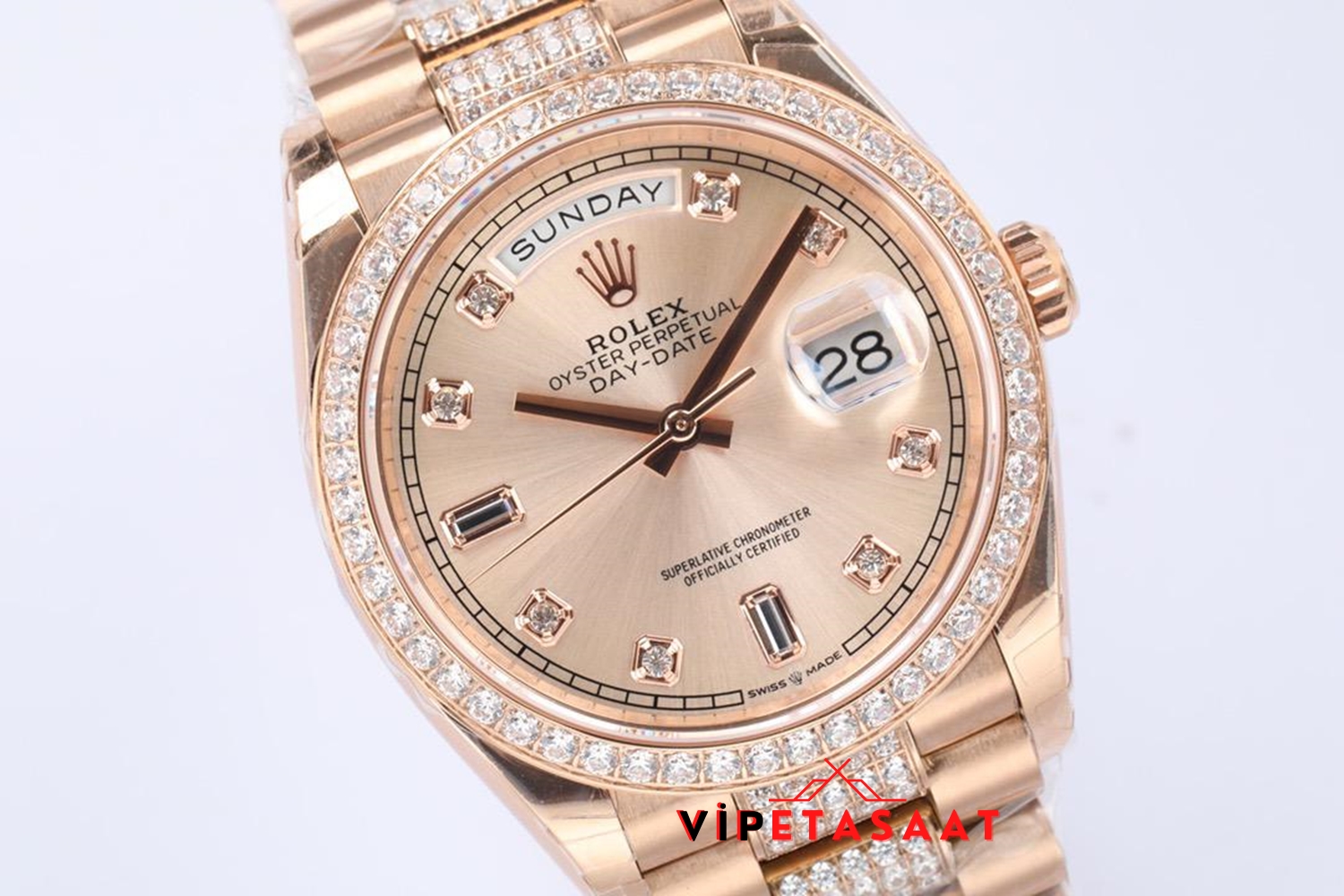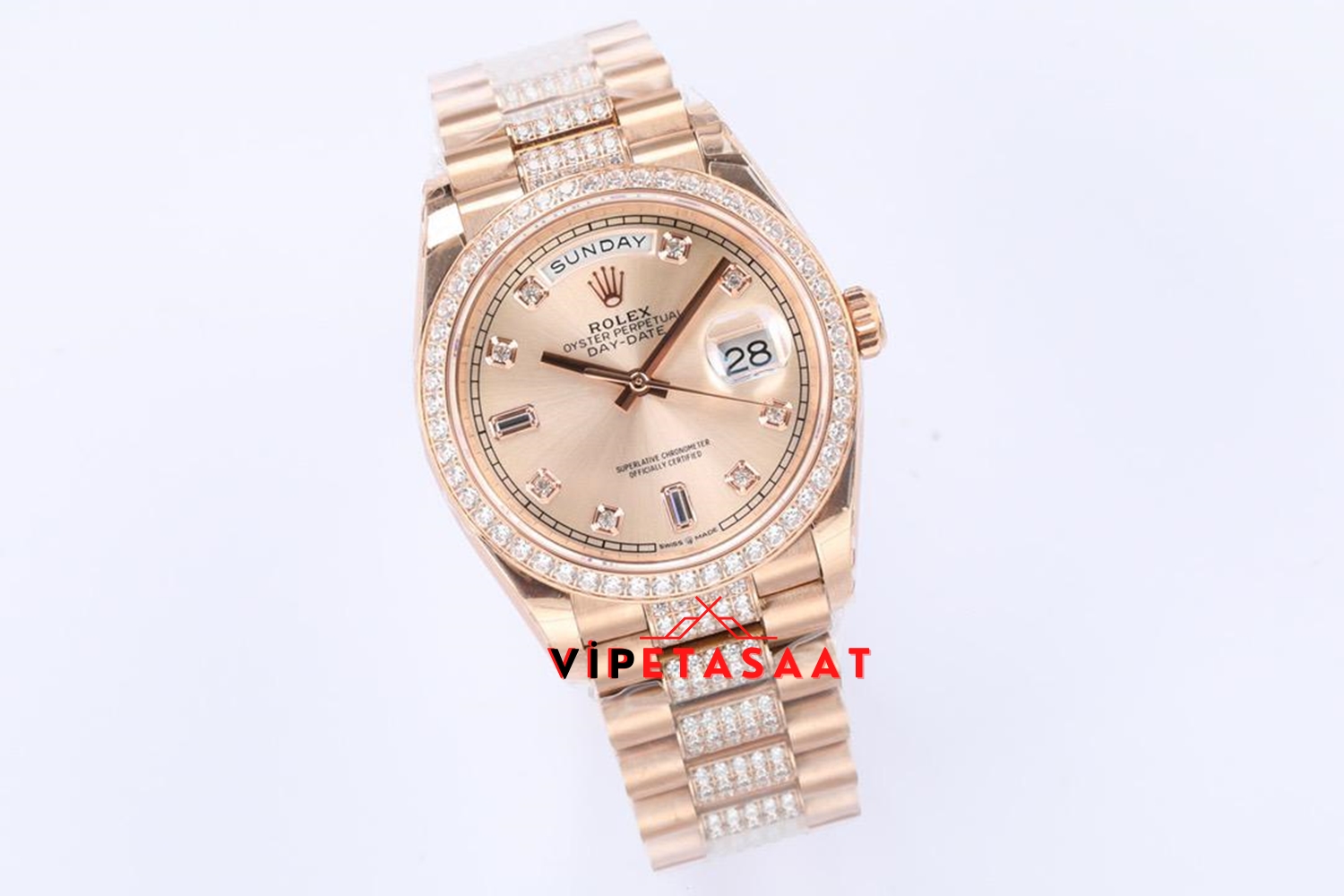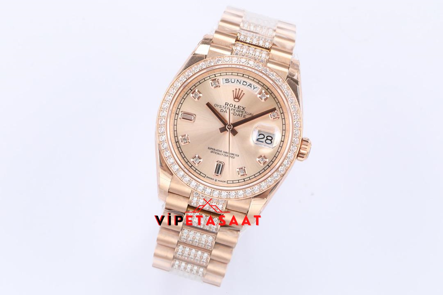 Rolex Day Date Taşlı Rose Bezel Super Clone 2836 Eta